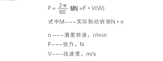磁粉制動(dòng)器、磁粉離合器的選型一般以所需傳遞最大轉(zhuǎn)矩為依據(jù)來選定,并注意保證實(shí)際使用的滑差功率,應(yīng)小于技術(shù)參數(shù)的允許滑差功率,余量大點(diǎn)更能延長(zhǎng)使用壽命。計(jì)算公式: